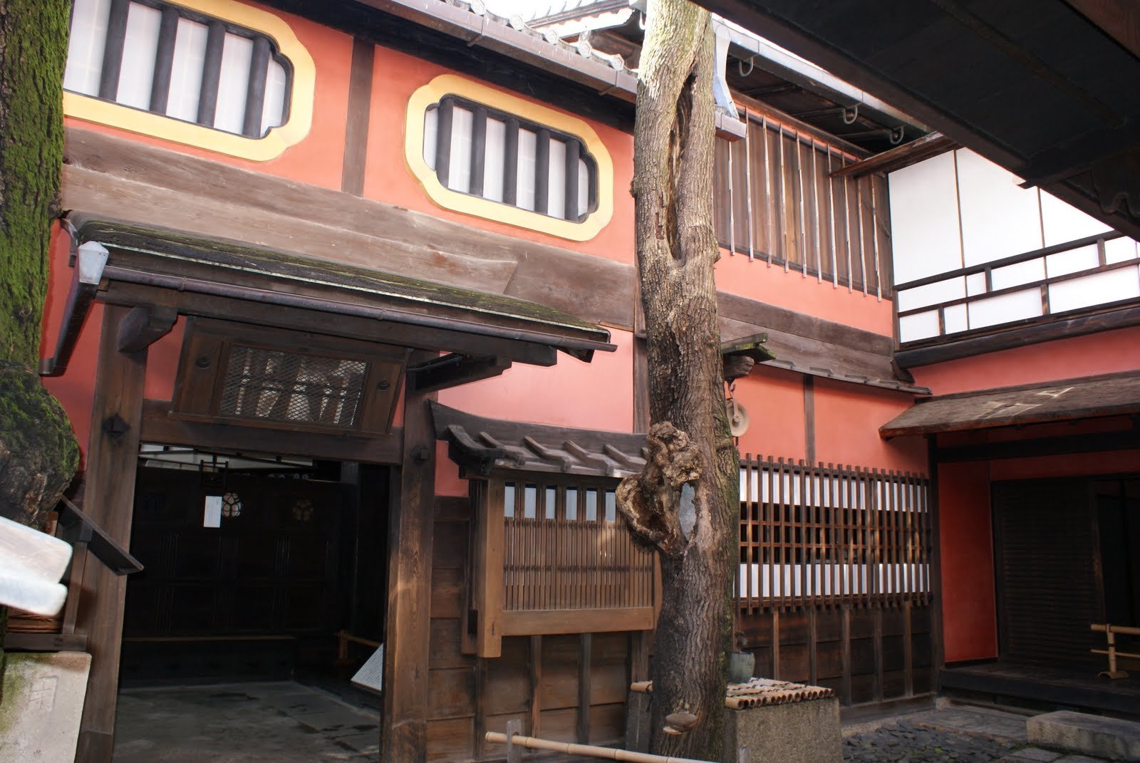 In a quiet neighbourhood in the south-west of Kyoto city, a restaurant that served the activists still stands. Sumiya’s rooms – decorated with cloisonné and mother-of-pearl – stun even now but none of this can be seen from the front of the building, a severe stretch of dark wooden lattices.