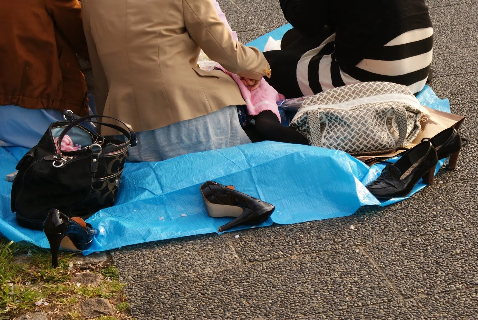Though it was a weekday, there were people having flower-viewing parties. (Shoes aren't usually left on the mat but it was a windy day.)